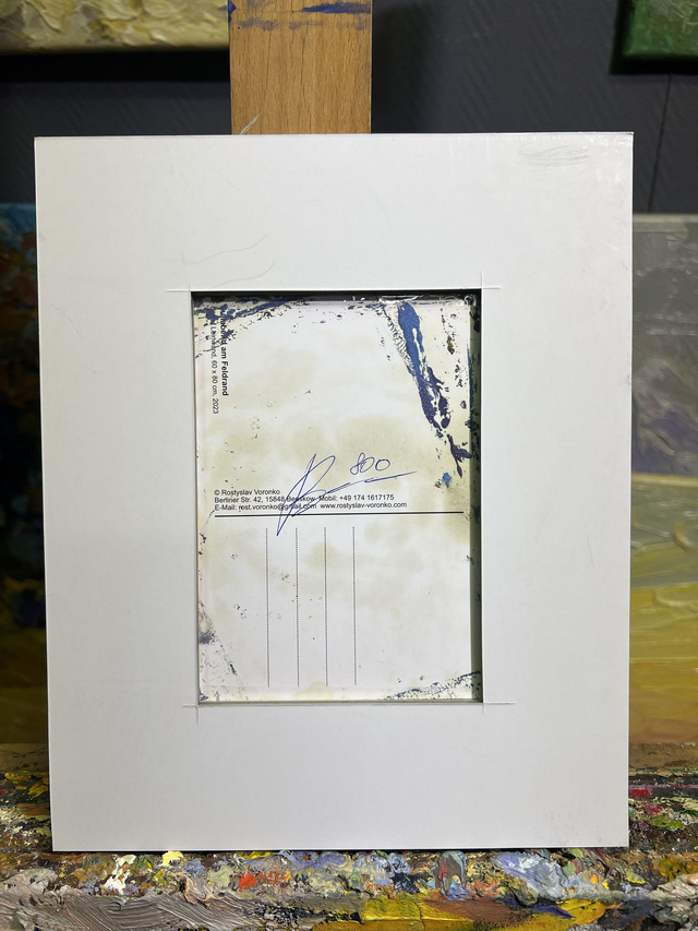 Handbemalte Postkarte, Öl auf Karton, 15 × 10,5 cm (mit Passepartout 25,5 × 21 cm), 2024
