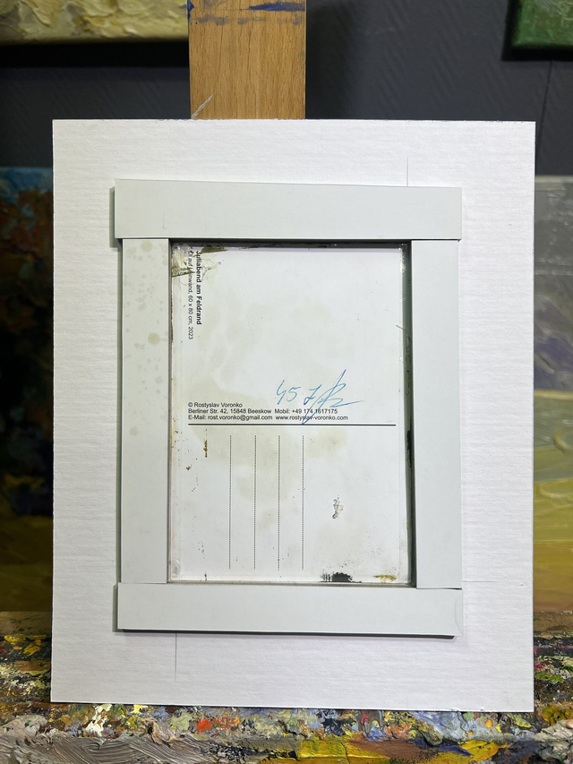 Handbemalte Postkarte, Öl auf Karton, 15 × 10,5 cm (mit Passepartout 25,5 × 21 cm), 2024