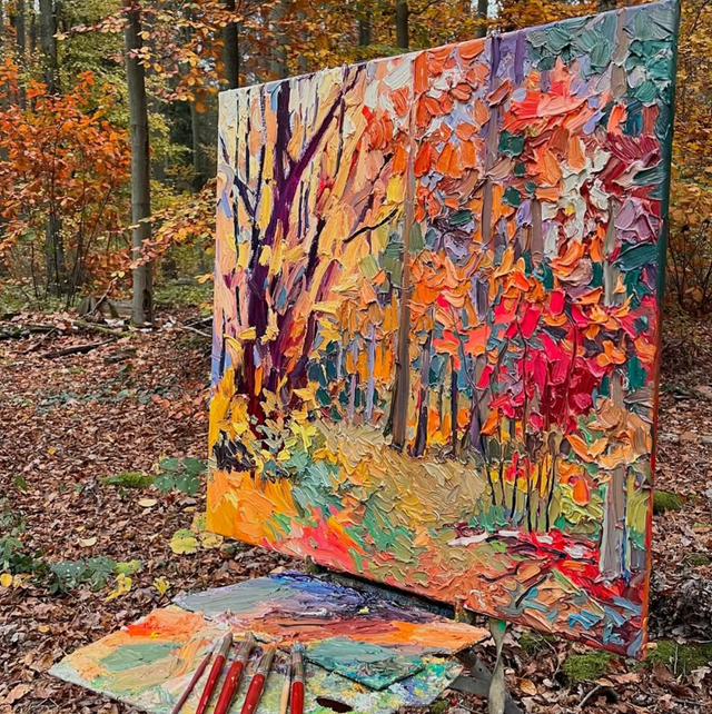 „Tanz des Herbstes“ – Öl auf Leinwand, 80 × 80 cm | 2024